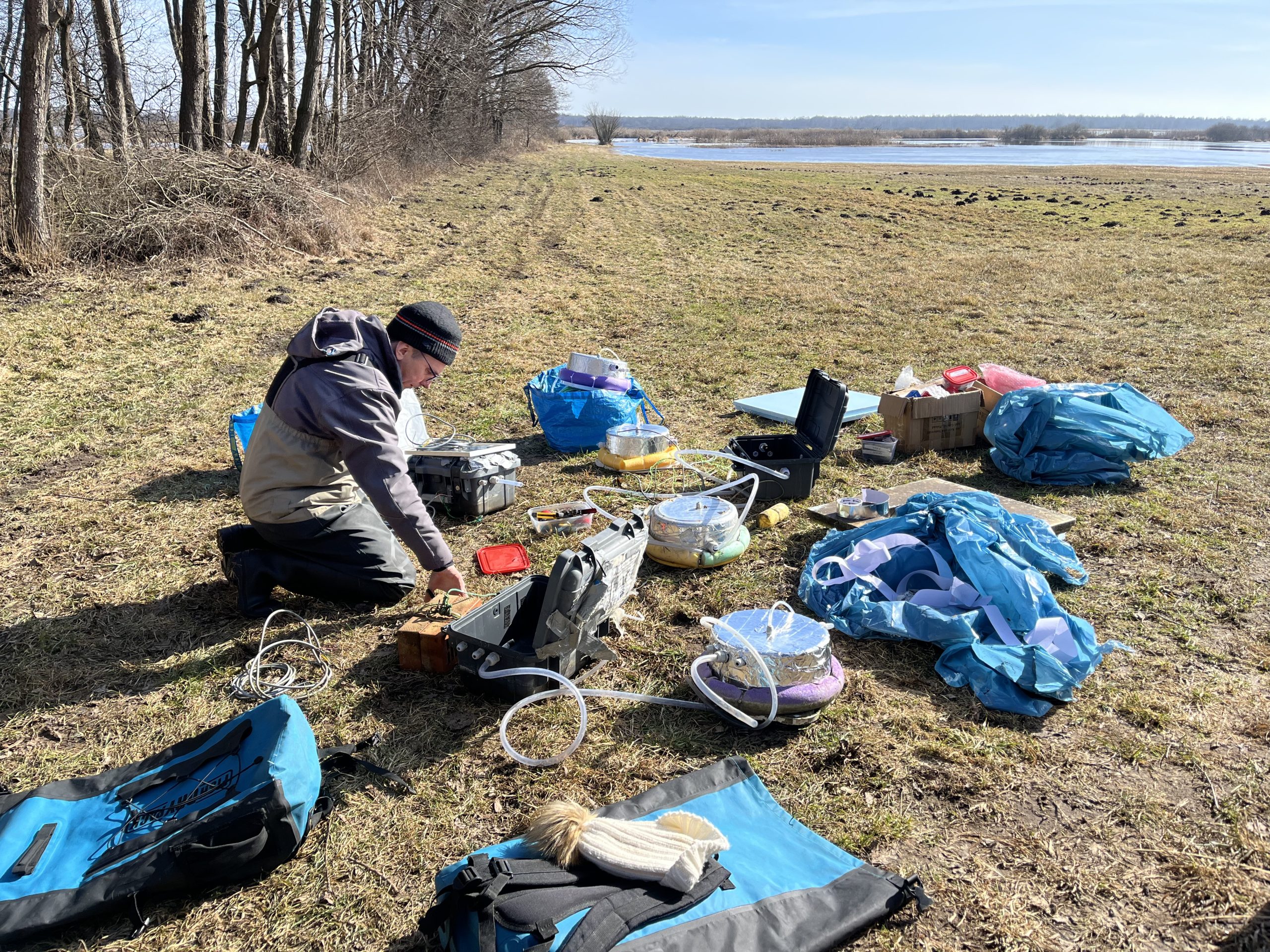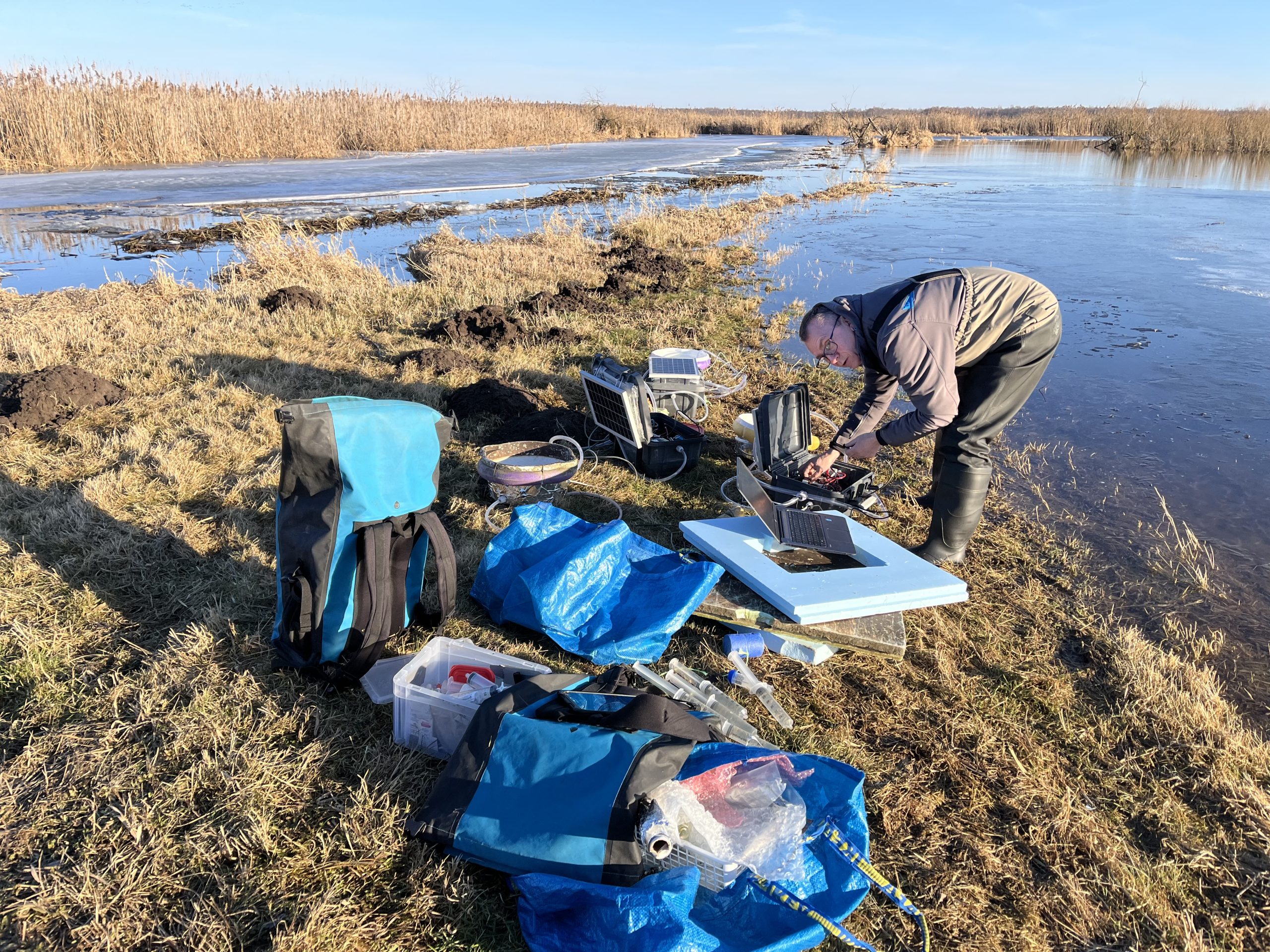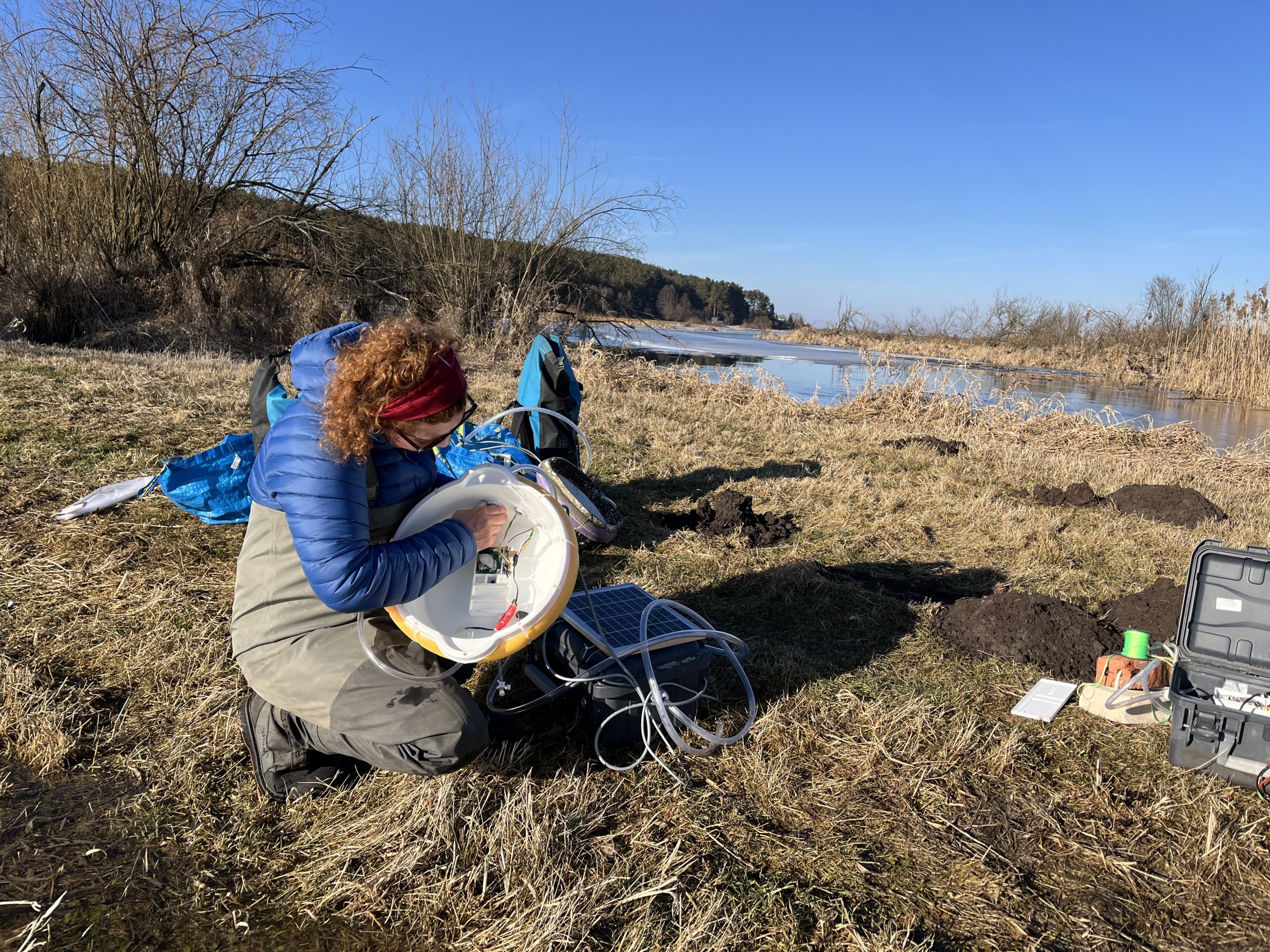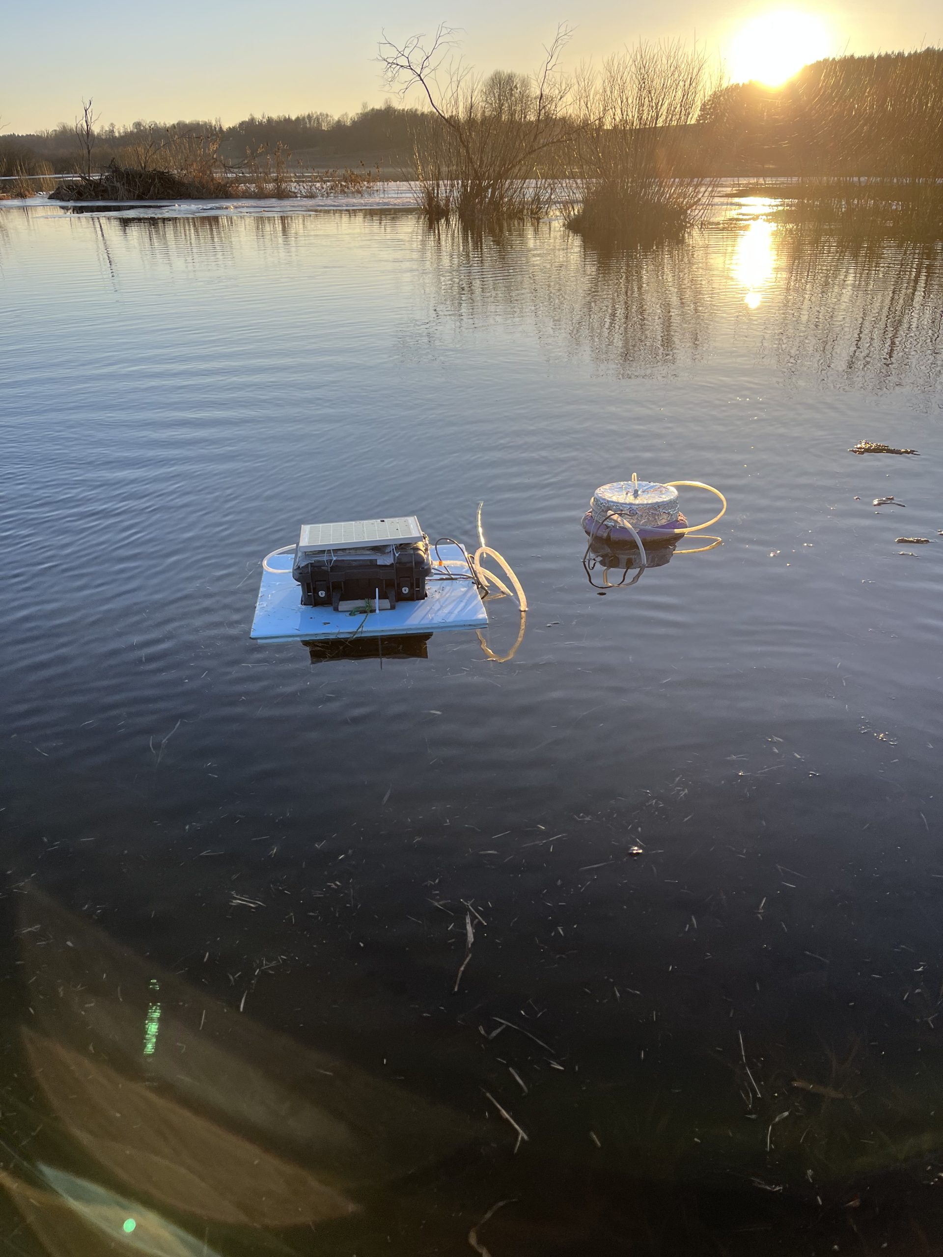 With the surface ice on the river and floodplain almost completely gone, we were finally able to safely install our automated flux chambers on the inundated Biebrza floodplain. Earlier deployment would have risked the equipment being carried away by drifting ice.