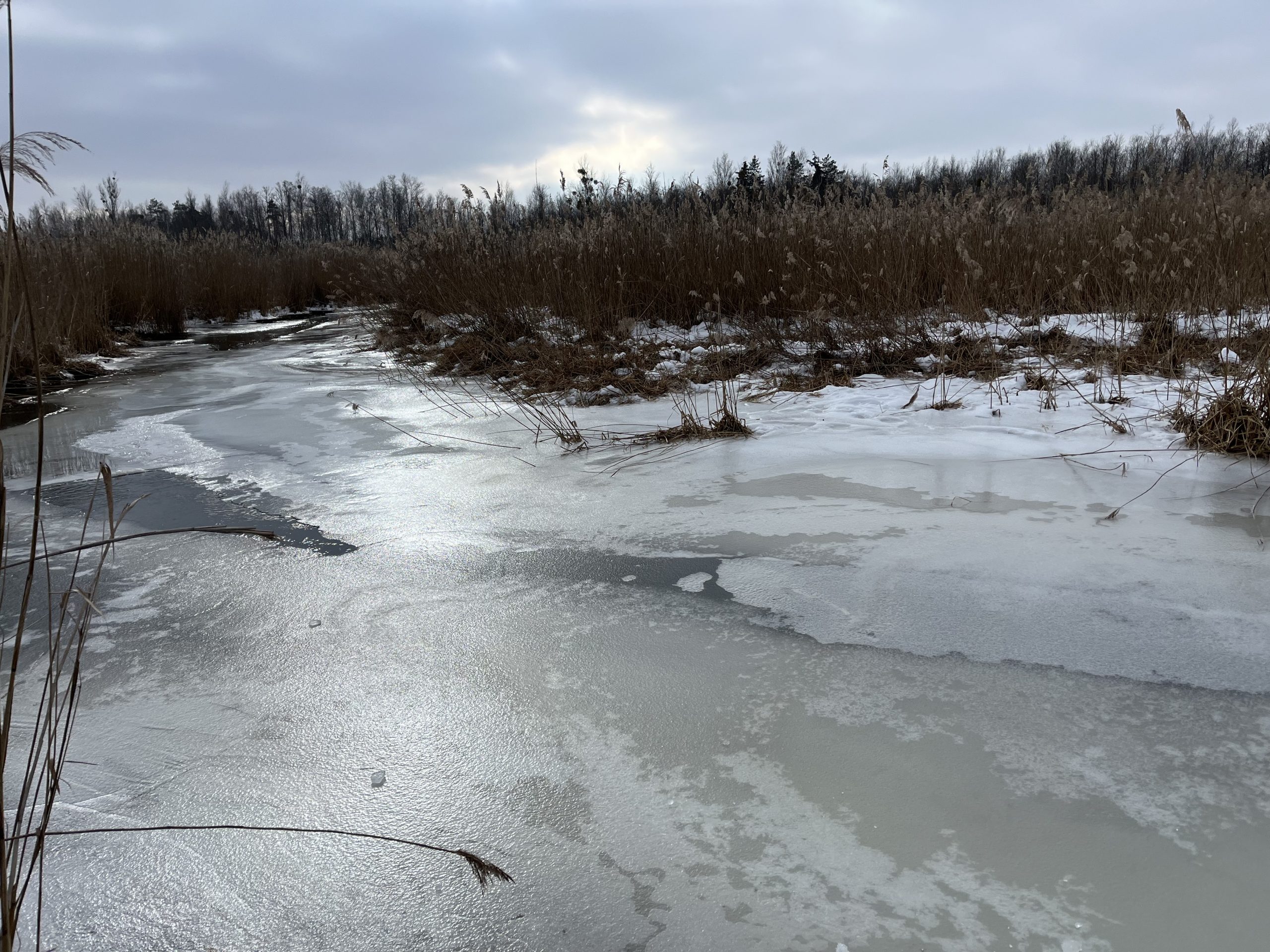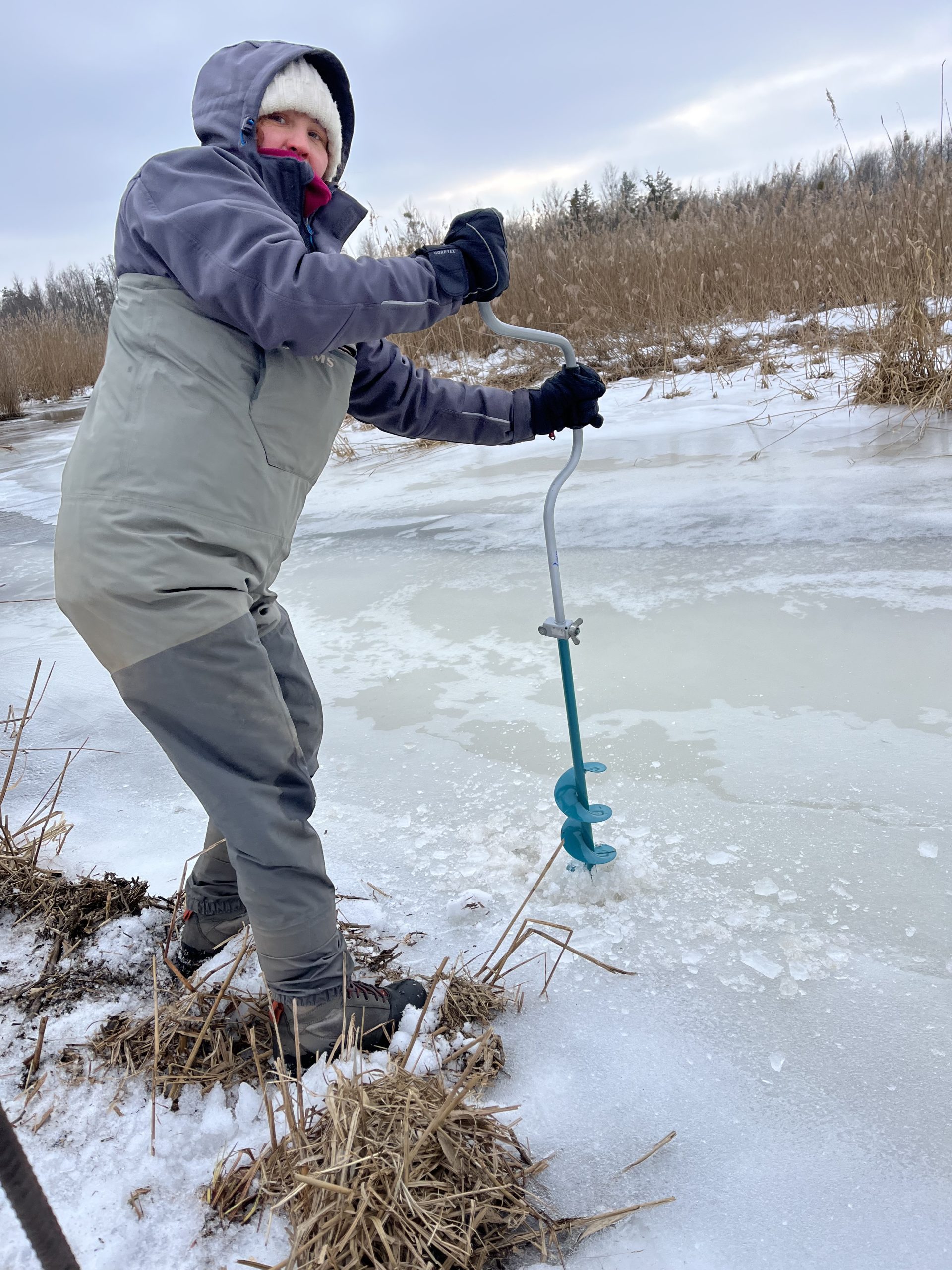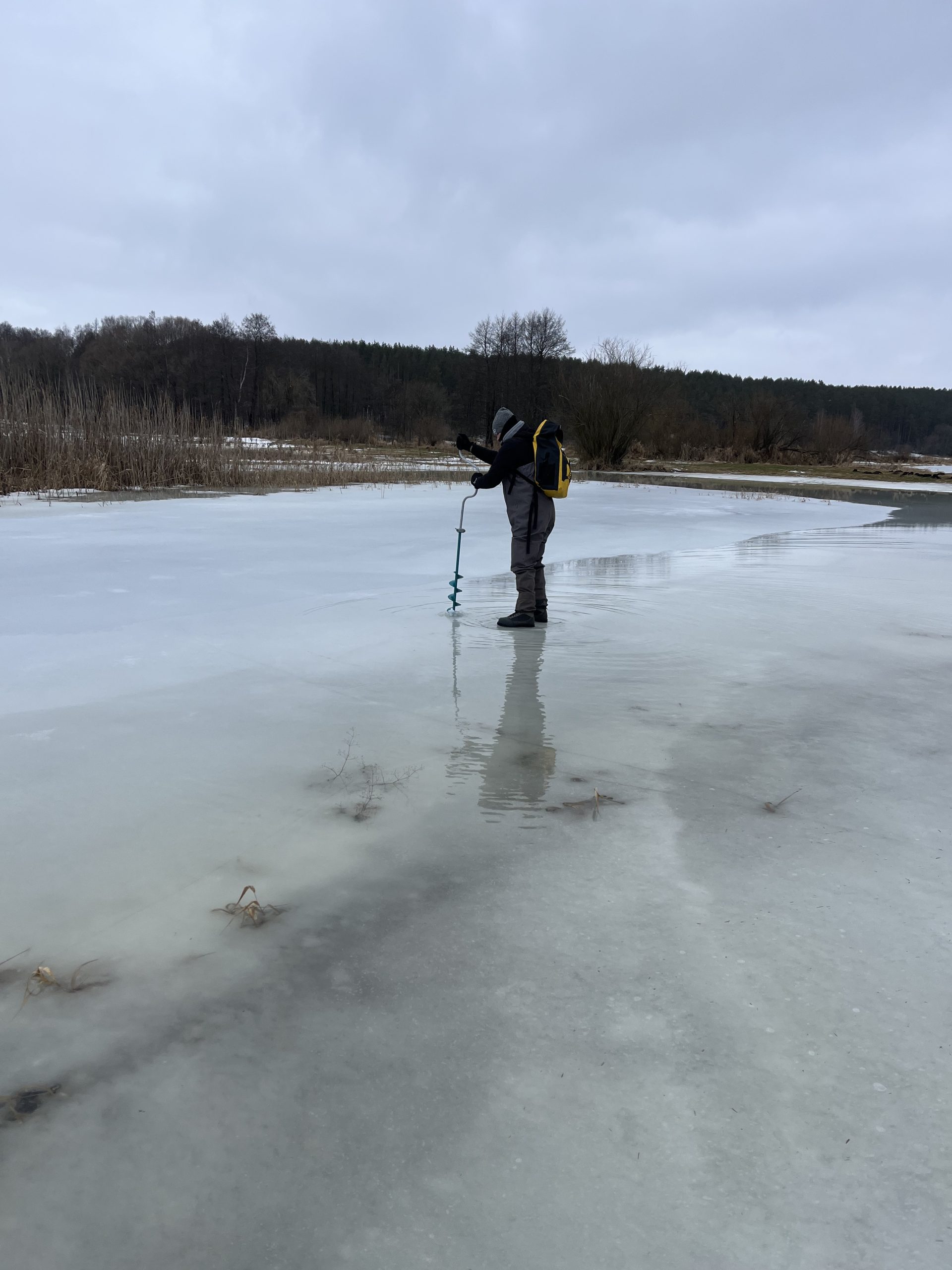 Our work focused on assessing the accumulation of carbon dioxide (CO2) and methane (CH4) during the winter period by collecting gas samples and measuring key physicochemical parameters. At some locations, ice thickness reached up to 52 cm, reflecting the intensity of this year’s winter conditions.